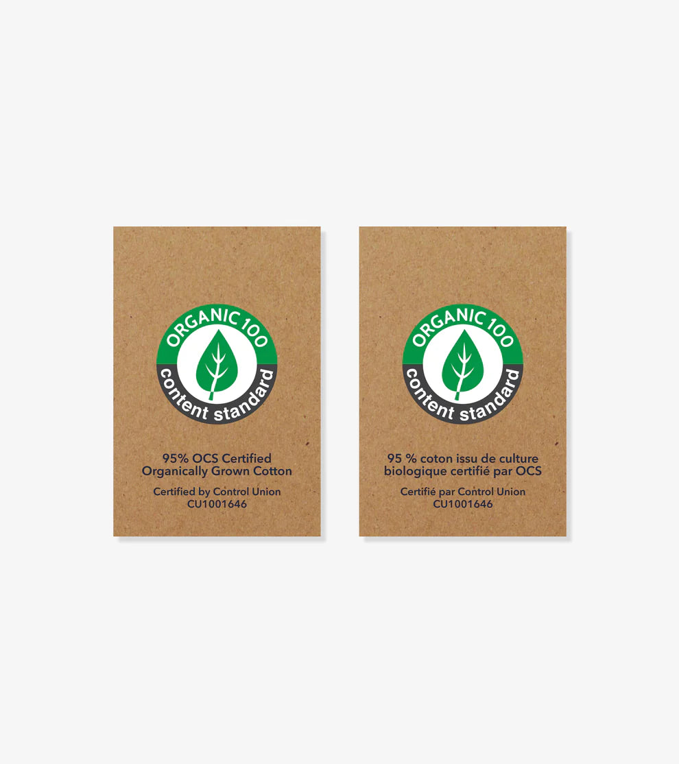 95% Organically Grown Cotton, 5% Spandex.