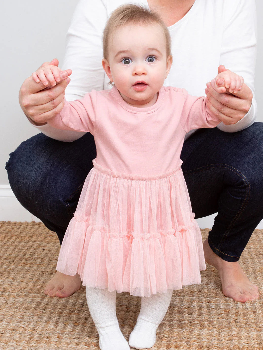 Our gorgeous Fairy bodydress brings together style and practicality in one garment. A layered tulle skirt, combined with a bodysuit vest, creates the most dreamy dress for any special occasion. Made from recycled and organic materials, it is sustainable as well as super sweet.