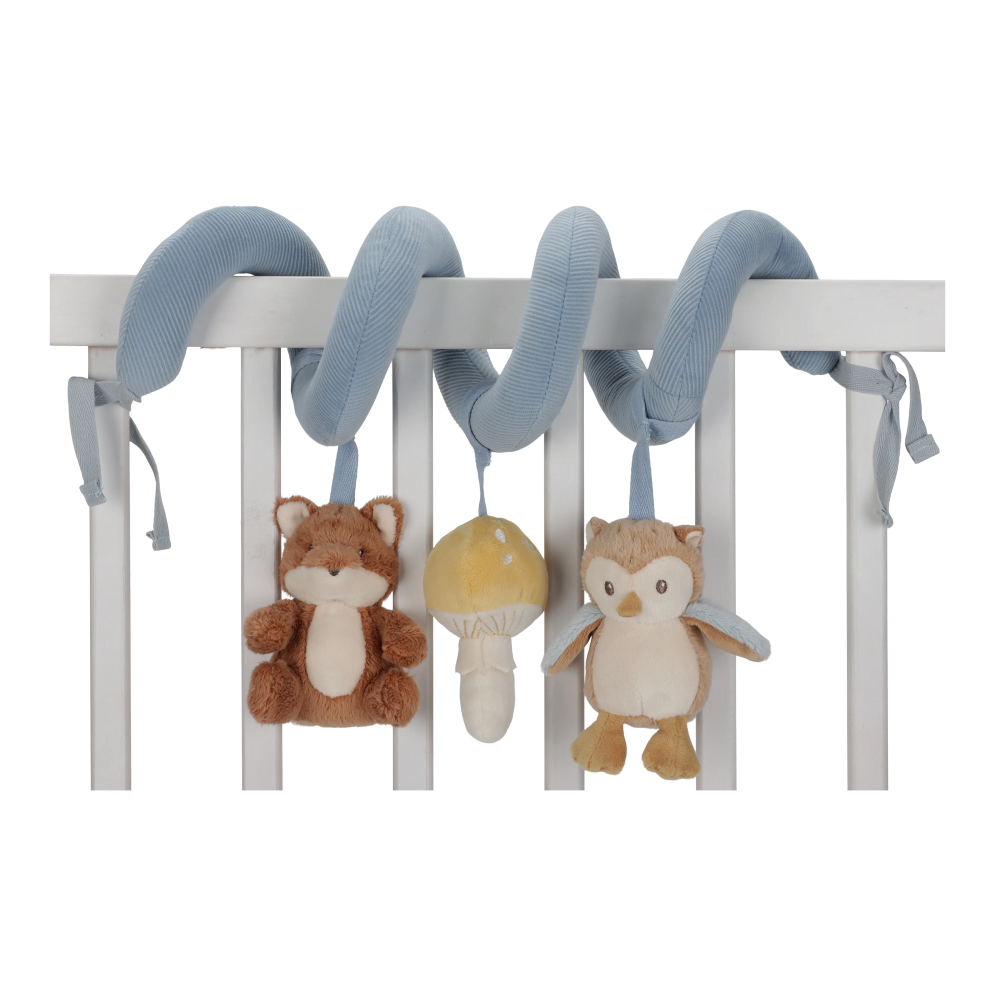 Look, feel, and discover! This fun and entertaining activity spiral will keep babies busy both at home and on the go. Easily attach this practical toy to anything from a crib to a playpen or car seat. It strengthens the senses and stimulates hand-eye coordination. The activity spiral is made of corduroy with cotton and features a small fox, a little mushroom, and an owl.