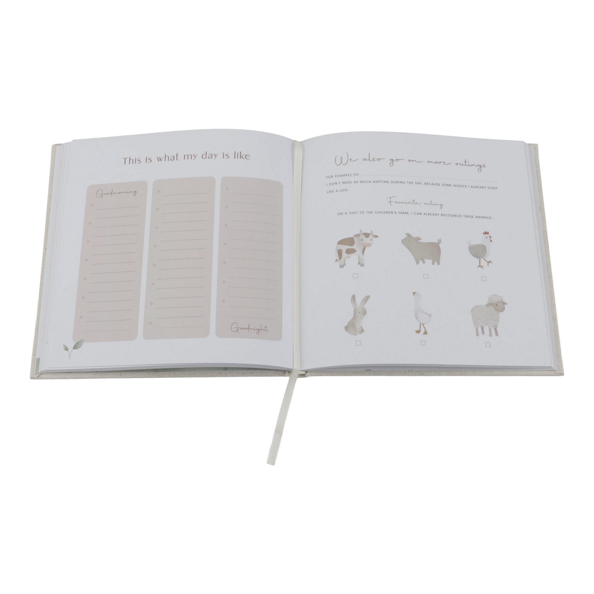 The Baby Book 'My first year' has a beautiful design, with each page thoughtfully arranged to capture milestones, growth, and precious memories.