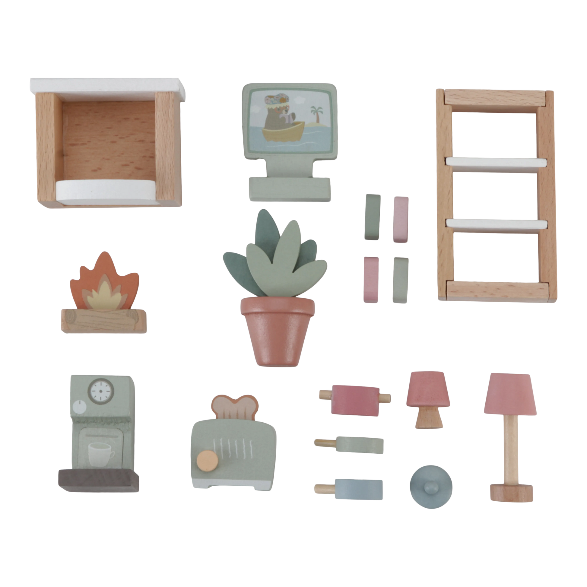 Discover the beautiful wooden expansion set for the new Little Dutch dollhouse! This set contains everything your dollhouse needs to come to life. From a stylish cabinet to a lush plant and a charming TV. Enjoy a delightful espresso with the cute espresso machine or make a tasty breakfast with the toaster and prepare the perfect meal with the adorable pan set. With this set, playing in the dollhouse becomes a true adventure!