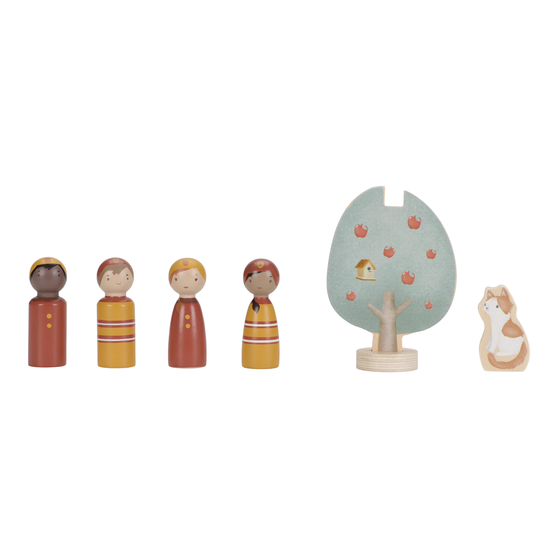 Rescue the cat from the tree! This wooden fire truck has an extendable ladder and a detachable fire hose that can be connected to the hydrant or the fire truck. Includes four firefighters, flames, and a fire hydrant. Perfect to combine with the fire station for even more play fun!