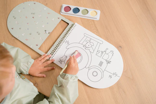 Little Dutch paint book, complete with brush and paint. The first 5 pages of the book contain colouring pages, the following pages are blank.