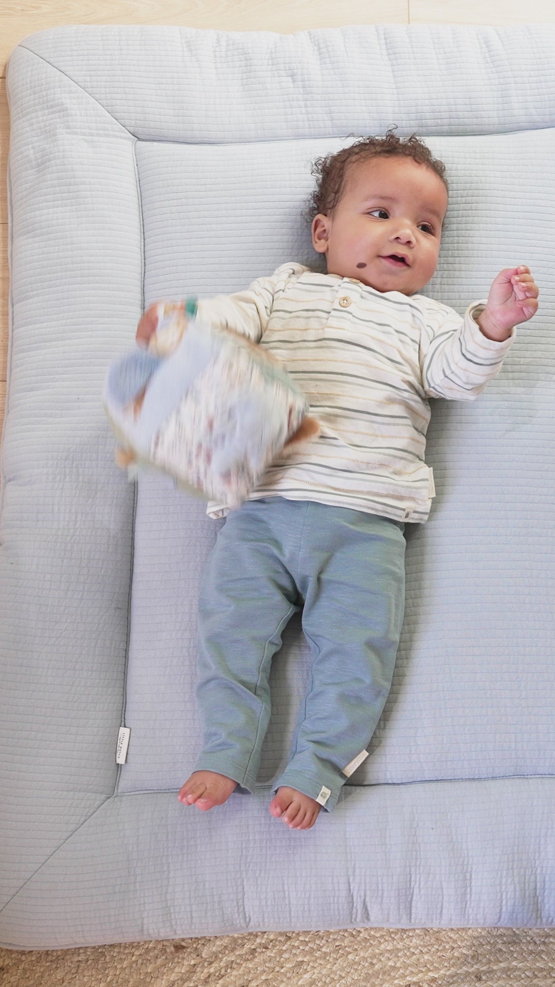 Explore the forest where all the Forest Friends live and play. Rendered in an array of appealing hues, this super-soft activity cube will trigger your baby’s curiosity. Every side features a different activity and is dressed in various textures, shapes and stimulating features. The cube can be grasped and rotated and comes with a mirror for self-discovery. It makes for endless entertainment while developing your child’s senses.