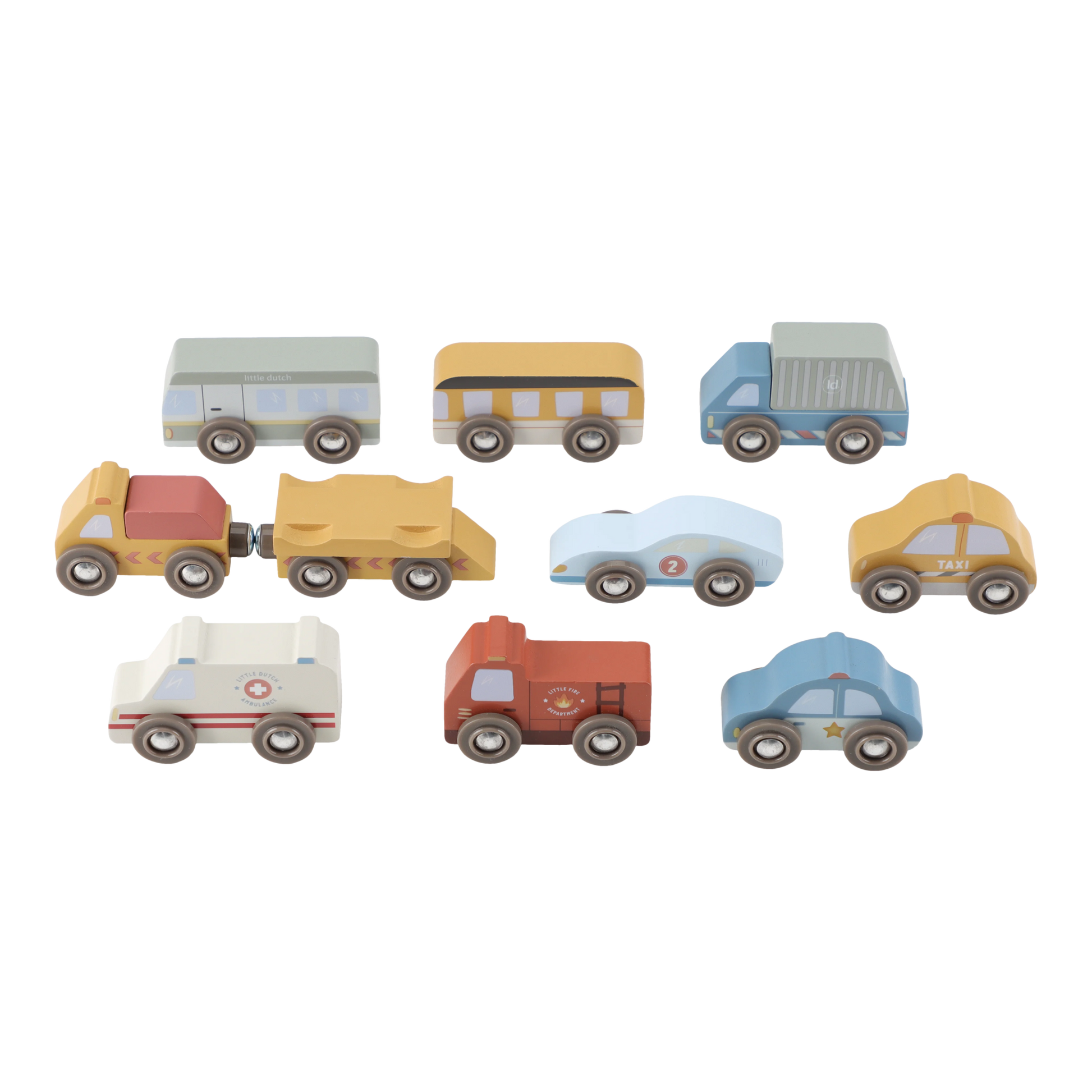 The city is always on the move! These wooden business and emergency vehicles are ready for action and smoothly ride the rails to provide help where needed. Send out the fire brigade, have the police patrol, or let the truck deliver goods. Designed for endless play fun with the Little Dutch Railway XL and expansion sets. Combine and create your own adventurous city!