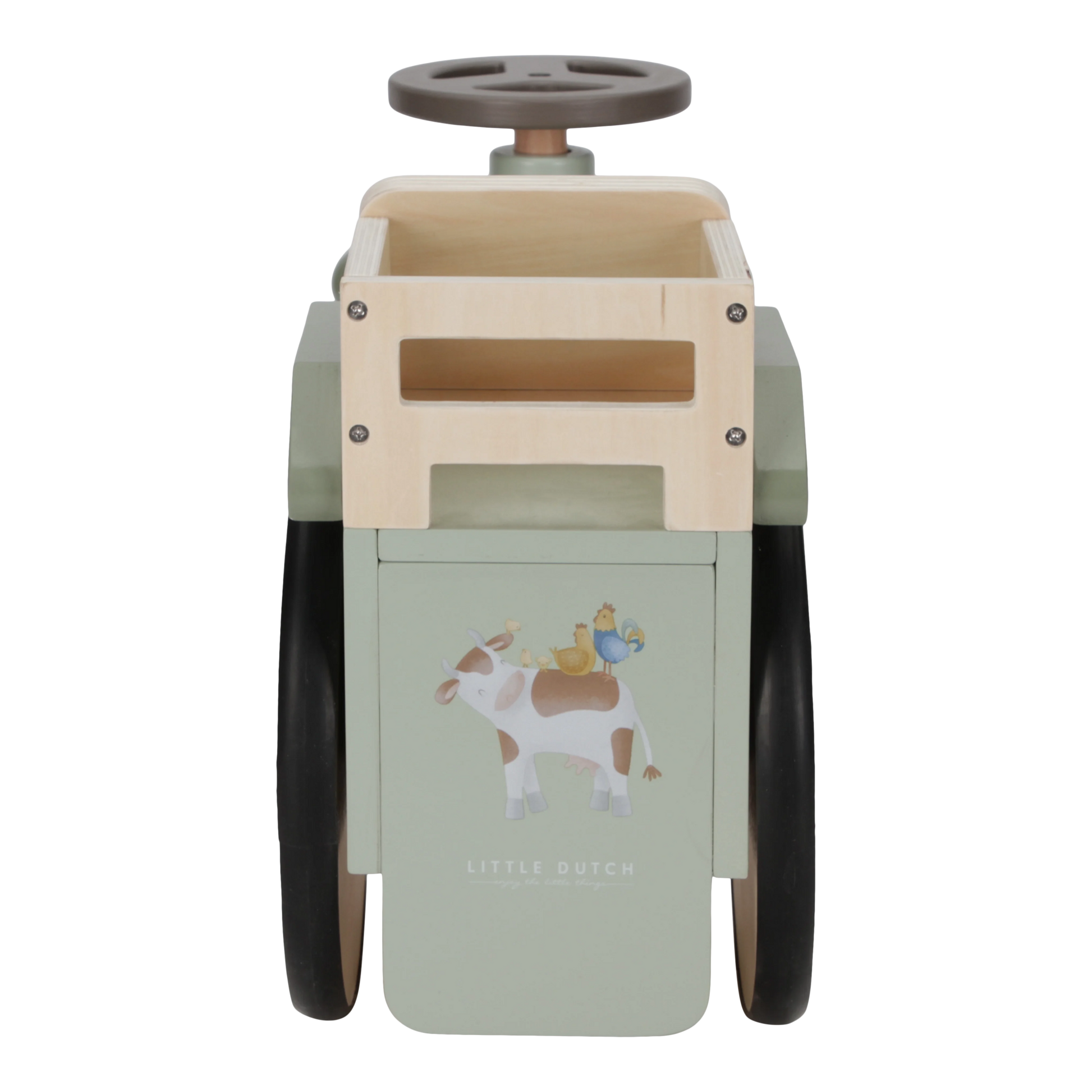 Hey there, little farmer! Get your tractor started and explore the charming little farm. Step by step, you'll learn how to walk, and this wooden walking tractor will be there to help you along the way. Imagine having your own farm—growing crops, taking care of chickens and cows—all while riding your very own tractor.