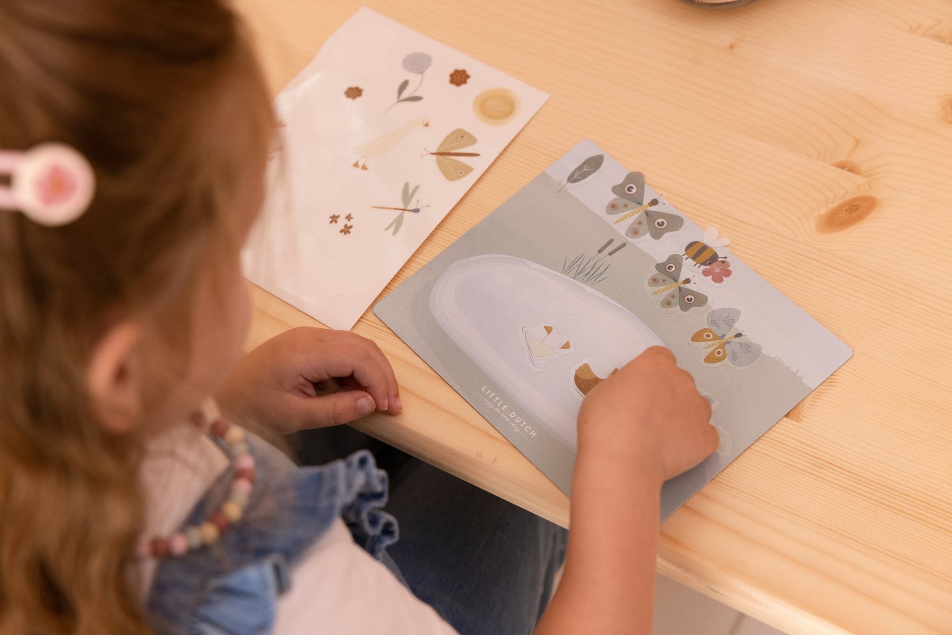 Lets get creative! With these stickers you can turn any window into a piece of art. Use them in the car or at home. On a window, a mirror, the included paper background or even a glass jar! There are plenty of ways to use the 4 sheets with more than 50 window clings with flowers, insects and animals. The window stickers can easily be removed and reused for new art projects. Fun, easy and very engaging for your little one!