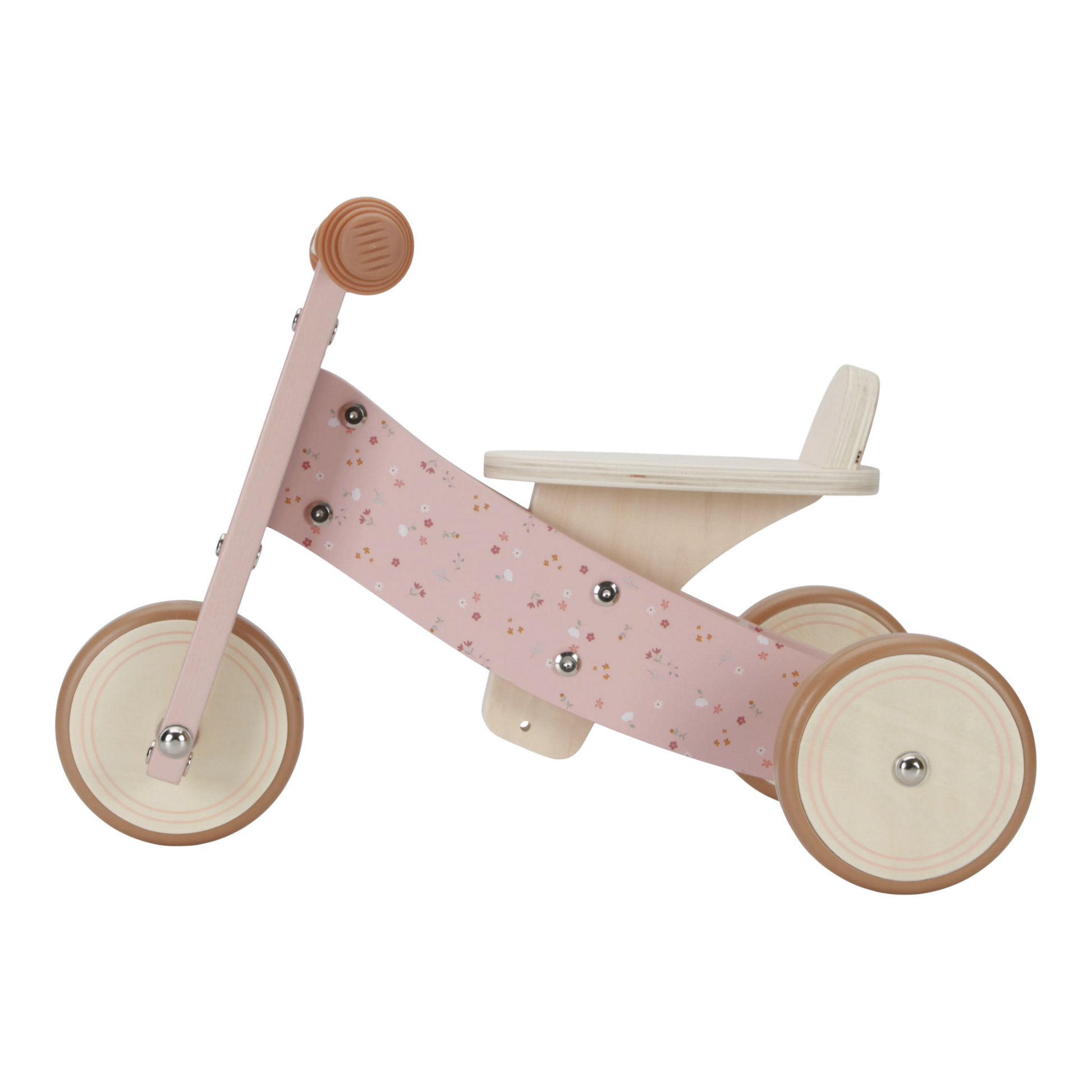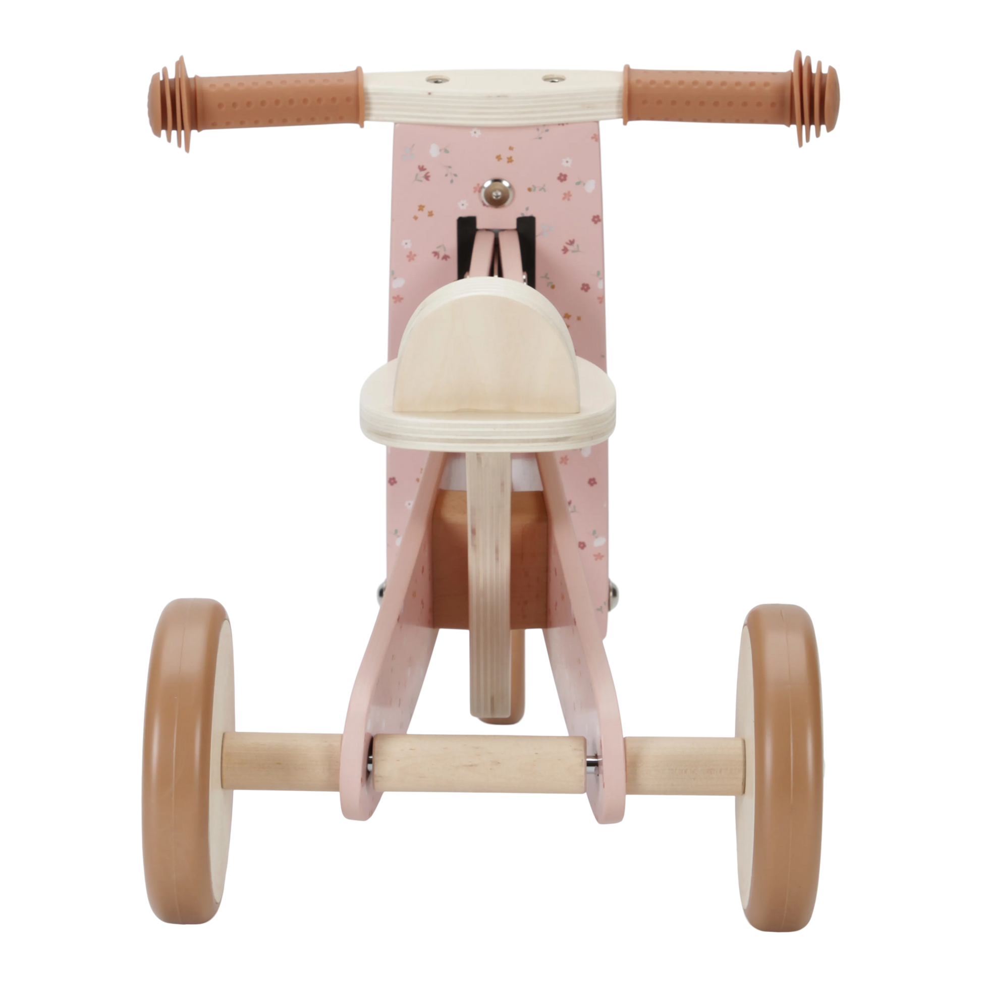 The wooden pink tricycle from Little Dutch is a cute and safe means of transportation for young children. It is designed in the beautiful Little Pink Flowers design and has a sturdy seat to provide comfort and stability for your child. The handlebar features two rubber handles for a good grip, and the wheels have a rubber edge for extra grip and safety. This tricycle is perfect for developing your child's motor skills while also providing hours of fun.