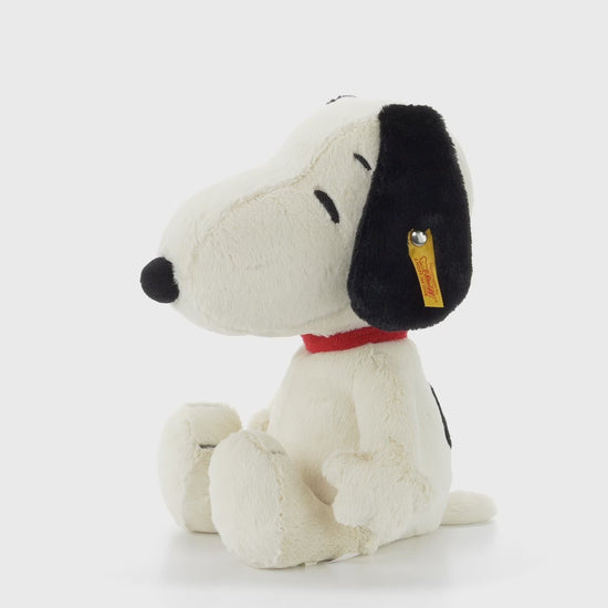 This superstar needs no introduction. Snoopy, the faithful companion from the cult comic strip Peanuts, is now available as a Steiff Cuddly Friend. Our Snoopy has the same charming, cheeky grin, lop ears and white and black markings for which he is loved by millions of fans. Measuring 30 cm tall, Snoopy sits upright and appears to be waiting with eager anticipation for someone to play with him.
