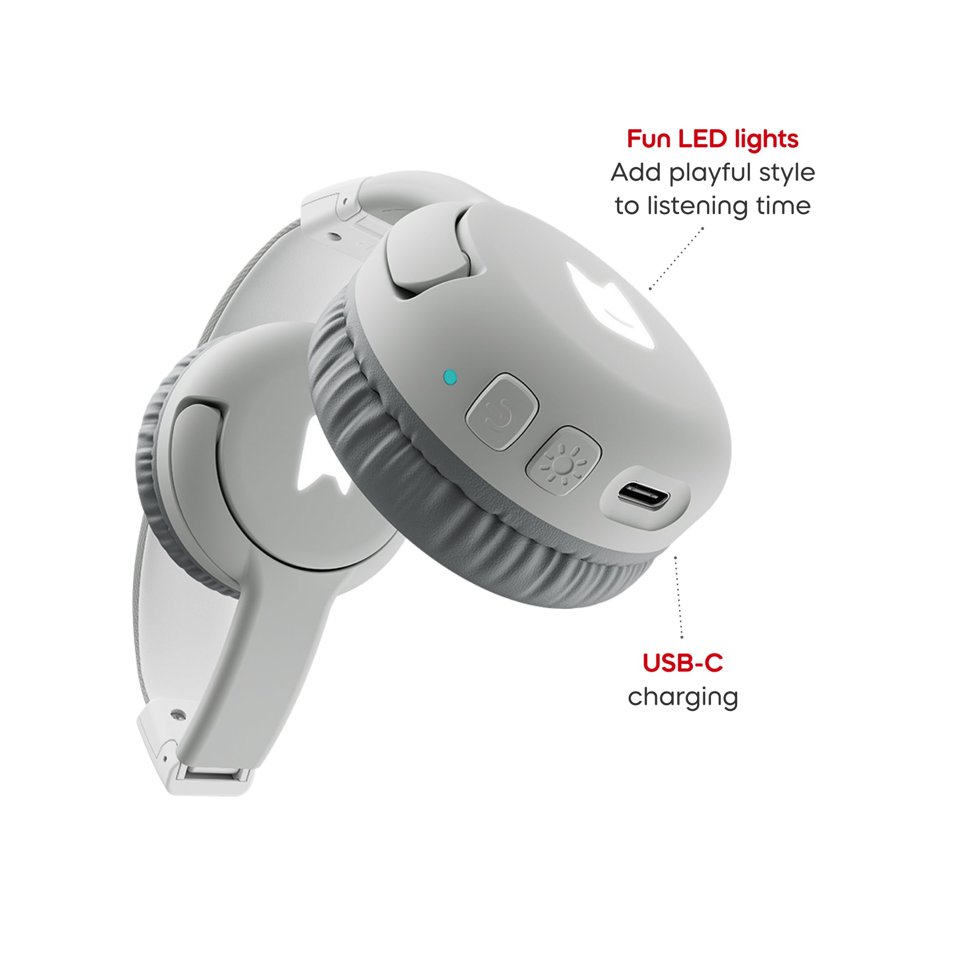 Go wireless with these Moon Grey Bluetooth® Headphones, the perfect match for Toniebox 2. With easy NFC pairing, little listeners can enjoy up to 40 hours of wireless playtime. Designed with growing kids in mind, they feature a comfy adjustable fit, playful LED lights, and a safe volume limit of 85 dB. Available in five matching colours, they fold up neatly when not in use and include a wired option too. Big sound. No wires. Just Toniebox listening, with room to roam.