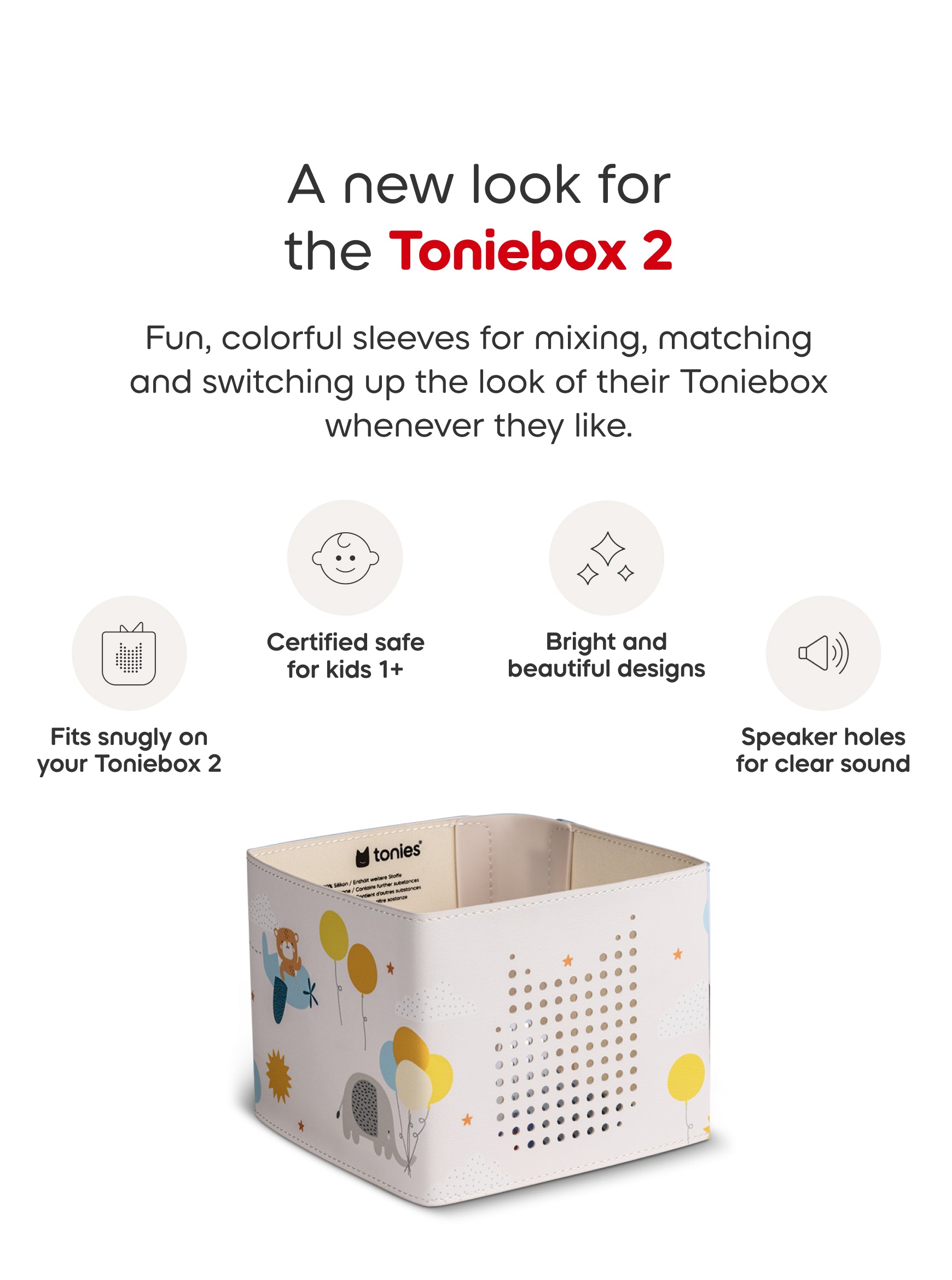 Let kids show off a dreamy new look with the Up in the Clouds Toniebox 2 Sleeve! With fun, colourful designs, it’s easy for kids to personalise their Toniebox and make it their own. They can mix, match, and switch things up whenever they like. The sleeve slips on easily, fits snugly with speaker openings to keep sound clear, and stays in place through everyday play. Whether they love bold patterns or favourite characters, there’s a sleeve that’s just right for them.